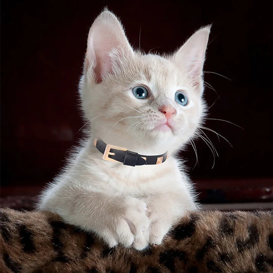 Gold Stud Solid Cat Leather Collar