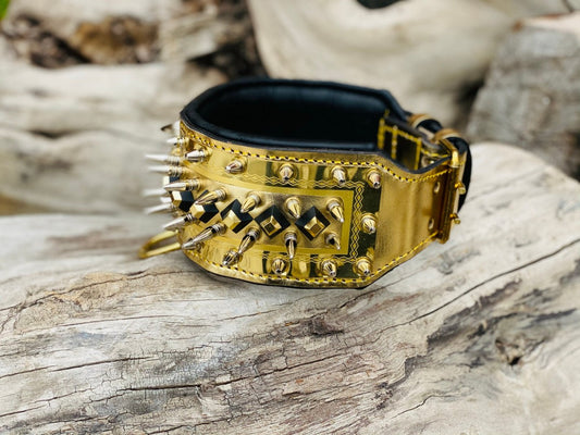 GOLDEN LEAF Carved Dog Collar