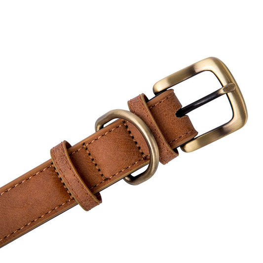 Gold Metal Buckle Leather Dog Collar