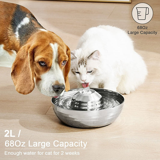 2L Quiet Stainless Steel Pet Drinking Fountain