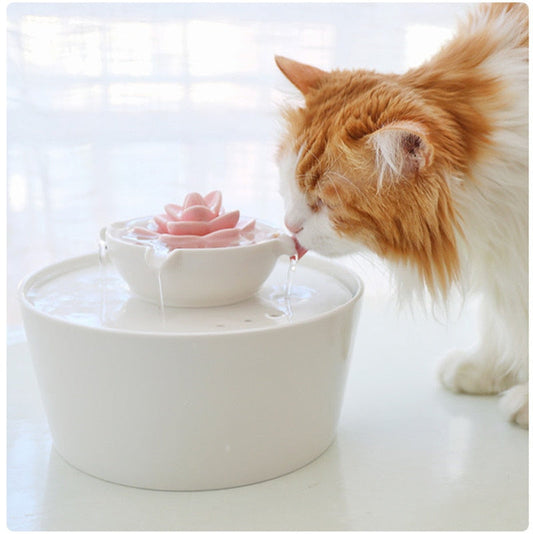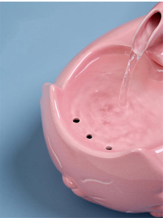 Pink Flower Ceramic Pet Water Fountain