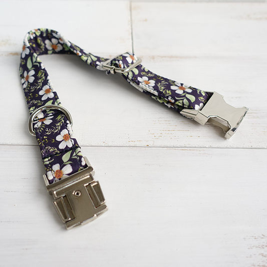 White Flower BLACK DAISY Pet Collar