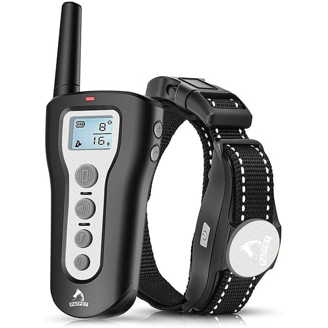 3 Training Modes, waterproof receiver, rechargeable battery, remote control, nylon belt.