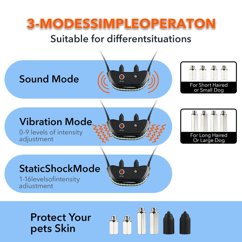 Suitable for Different dog:From 15 to 100 lbs dogs, our dog collar is suitable for different dogs. The package contains both long and short contact points which are fit for both short and long-haired dogs.