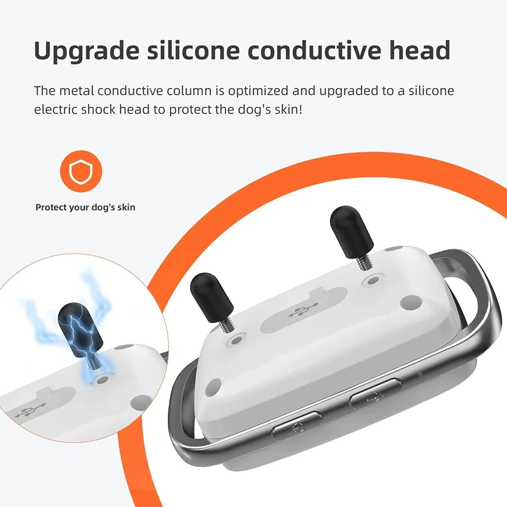 Dog training collar has a designated recording button to record voice command. Simply record the command and use it to train your dog when needed. You can record something like "Stop/No" or " Come back", etc. Push the sound button to send this pre-recorded voice command from as far as 1100 yards away in open area. This can be very useful when dog is a little far from you and it needs to listen to the commands more realistically.