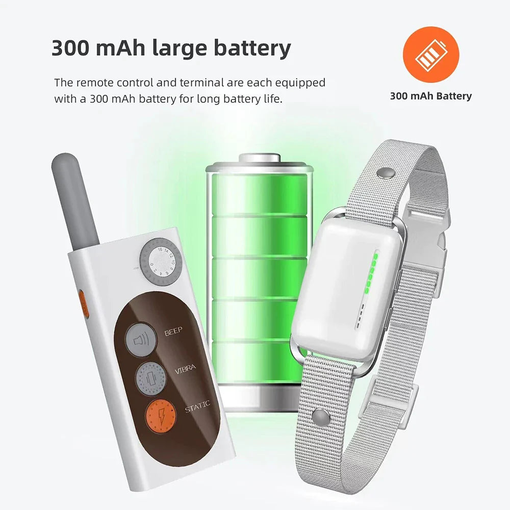 Remote dog collar receiver has bright LED status lights for dogs to be seen in dark or at night. With large capactiy rechargeable battery, you will need charge the dog trainer collars far less frequently.