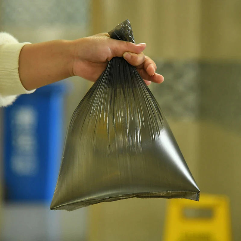 Leak-proof bags for safe, sanitary handling; arrows point to the bag opening for quick access