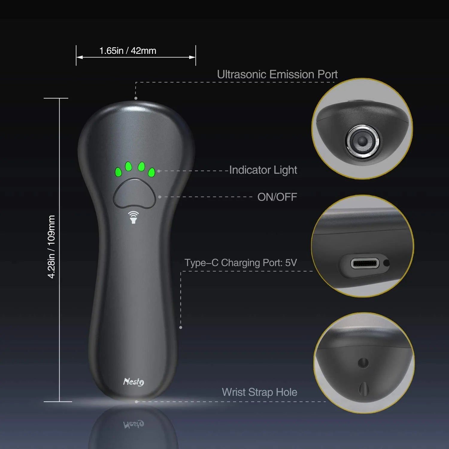 We uses latest ultrasonic technology emits ultrasonic sound at 25 KHZ and 30 KHZ--which can grab dogs' attention without affecting humans,friendly for your pets and your family.