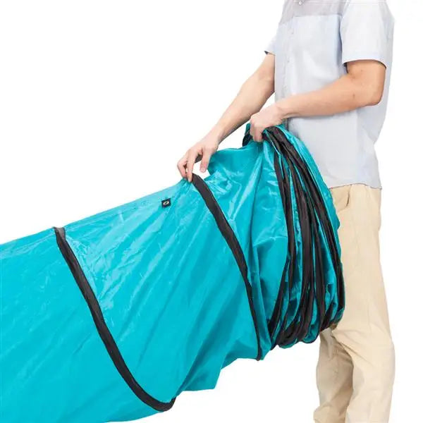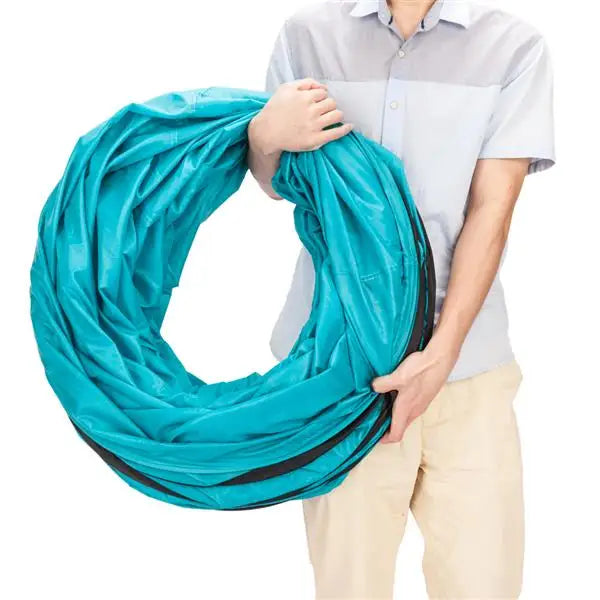 The tunnel is made of 190T Oxford cloth that resists tearing and ripping during various training drills. With the included carrying bag, this pet tunnel can be taken go wherever easily or stored away.