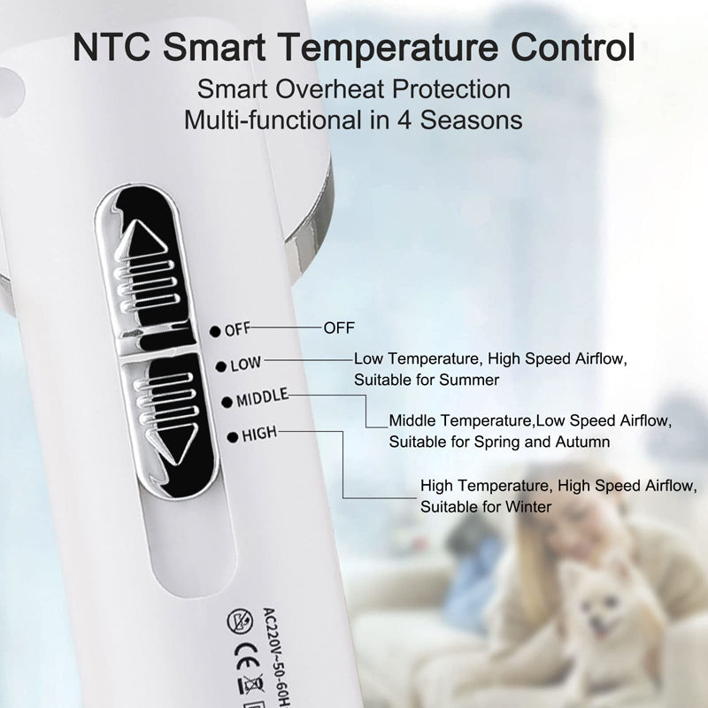 【3 Adjustable Temperature】Three temperature settings of low, medium and high(40°C-60°C-80°C) can help dry your pets quickly. And the pet hair dryer will automatically power off when it's overheating and suit for small medium dogs and cats.