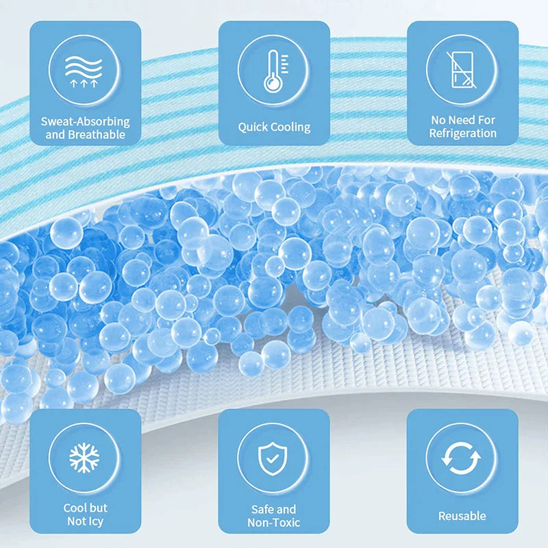 It is made of cotton + absorbent resin particles that resist heat and cools down, breathable and reusable.
