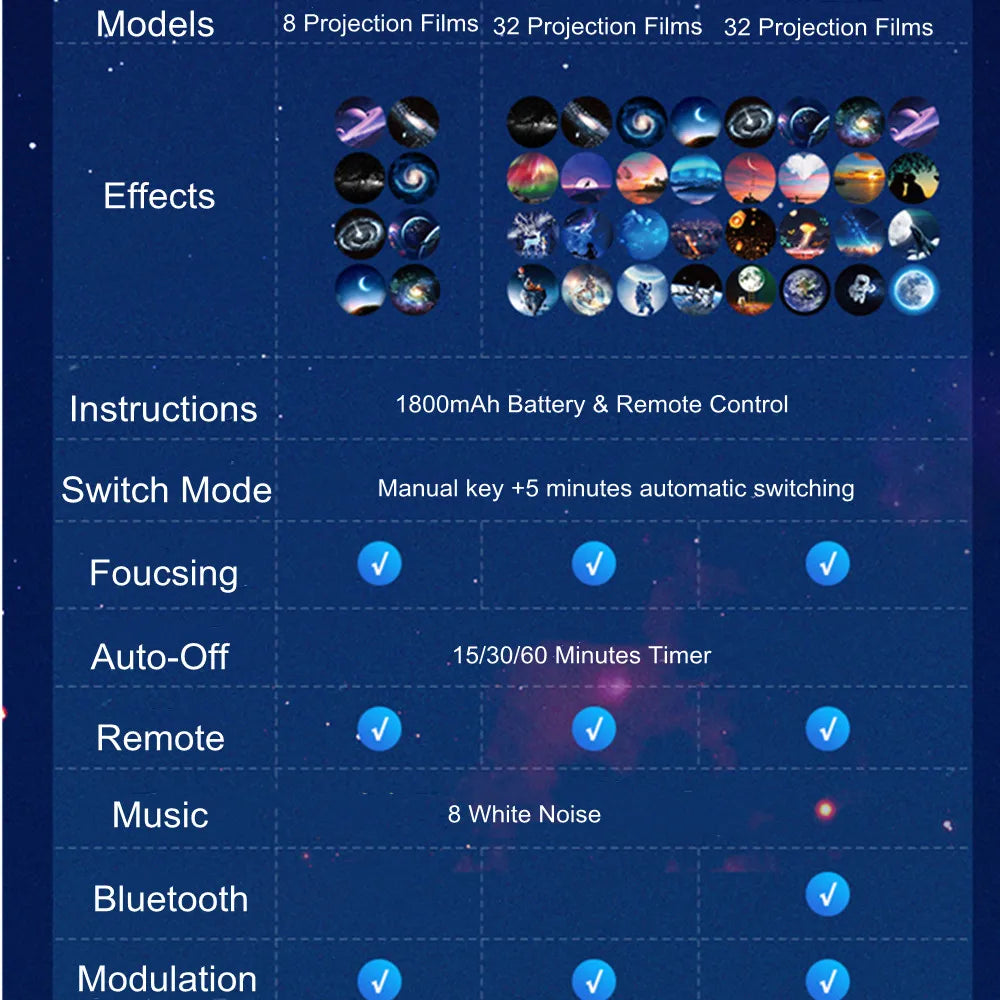 1. 32 Scenes in 1 Starry Lamp: Star projector light come with 4 different conten film trays.1 disc came with 8 different effects.