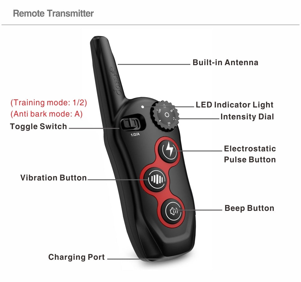 The DB400 remote dog training & anti bark collar is an intuitive system in a compact design for dogs sized 15 pounds and up. The training mode teach your dog obedience basic command, the anti bark mode make your dog stop bark automatic.