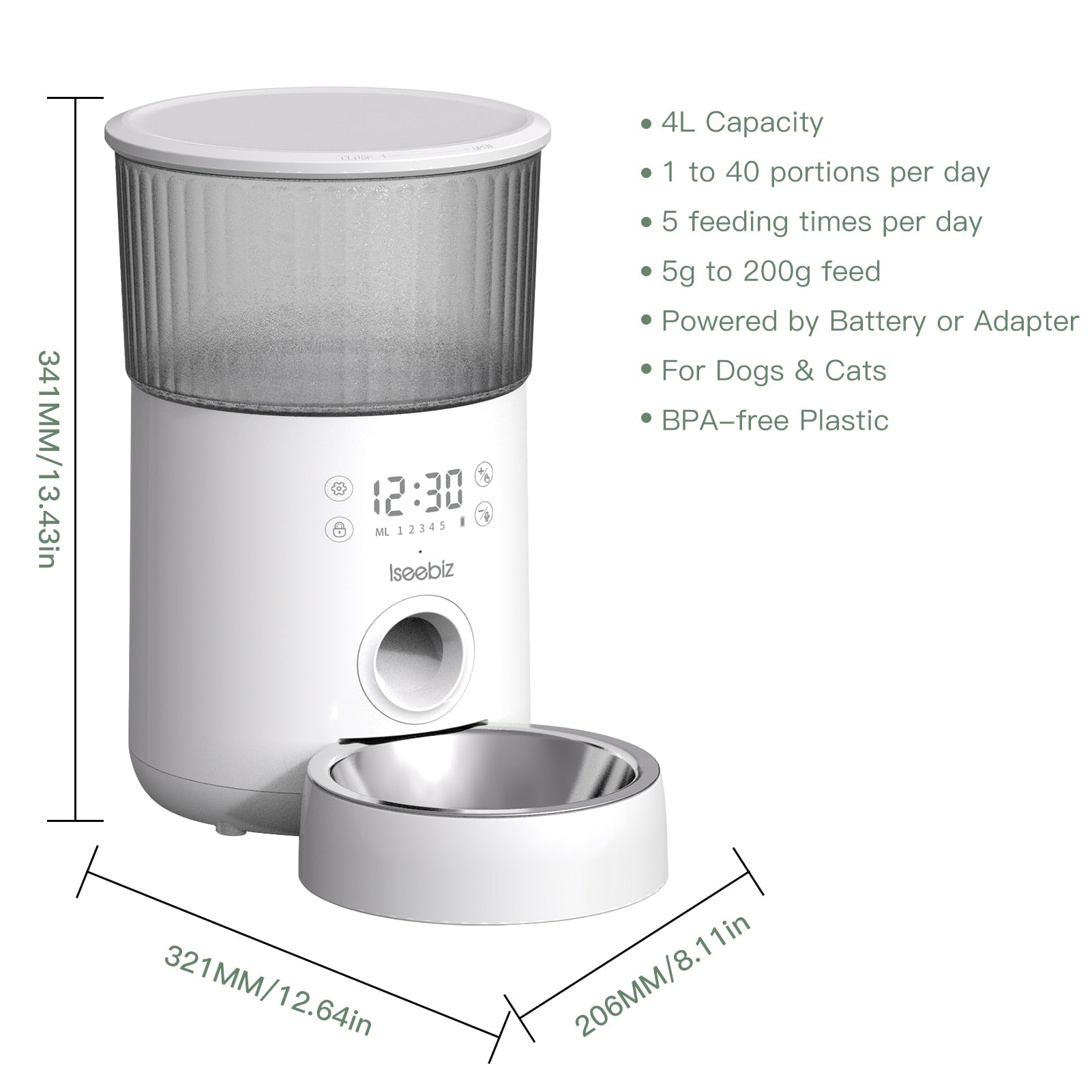 【Customize Feeding Portion】 This automatic pet feeder provides flexible meal portions from 1 to 40 portions per meal, 5g for every portion.