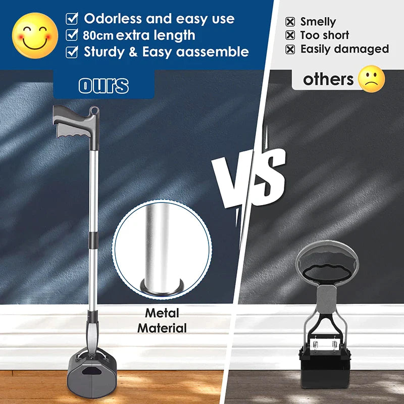 No More Bending: 80cm/32 inches length pooper scooper keeps you away from all the messes and stink, providing comfortable and extended reach, no need to bend over to clean dog poop. Less bending and squatting!