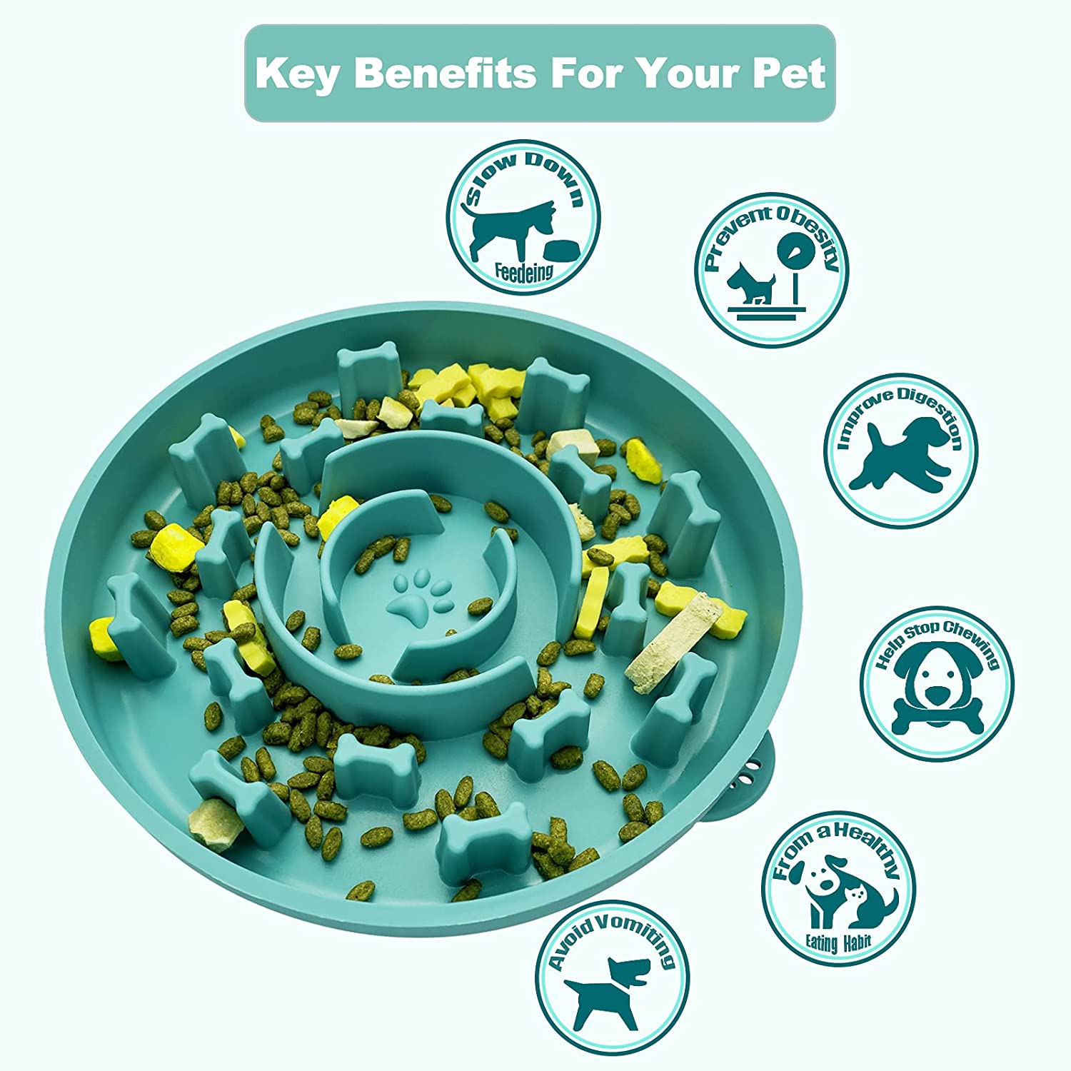 Innovative design: The suction cup at the bottom of the dog slow feeding bowl effectively prevents the bowl from moving or dumping on the floor; the soft silicone slow feeding bowl will not harm the pet's nose.