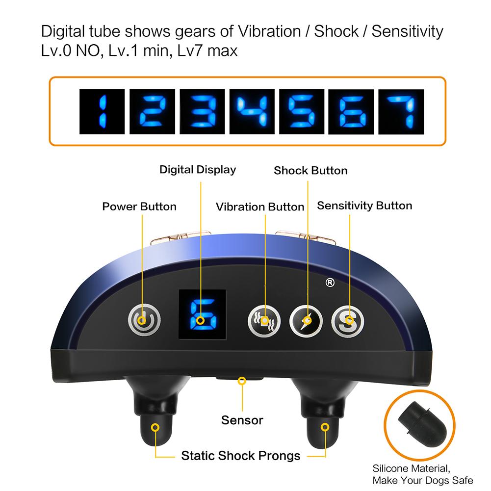 Safe and Humane Bark Control Collar - There are 3 buttons for setting the level/intensity of the vibration,shock and sensitivity. Each has levels 0-7,displayed on the LCD Tube. If you do not want to shock your fur babies,just turn down level of shock( button with lable of lighting on the panel ) into 0.