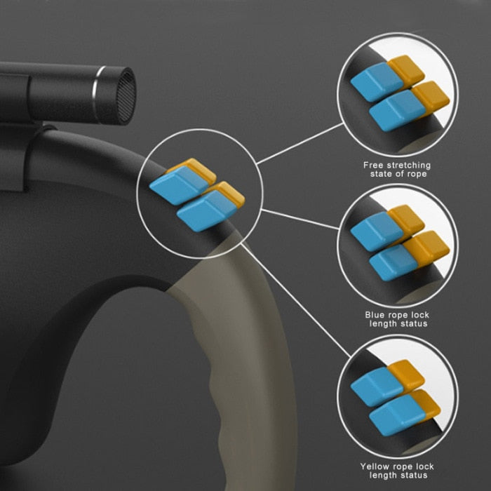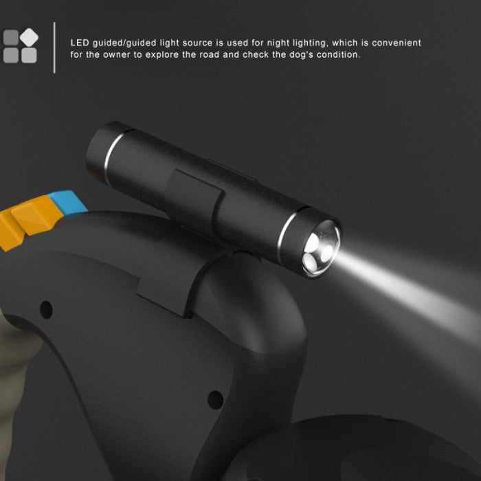 Safe Reflective Dog Leash- The retractable leash tape is embedded with reflective materials. Highly reflective cord leash increase security & visibility for dogs and their owners at night.