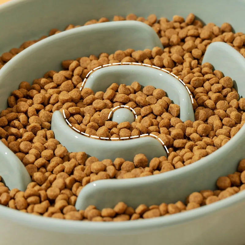 Ceramic Dog Slow Feeder Bowl With Wood Stand