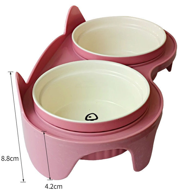 【Non Slip plastic Stand】: The plastic stand on the bowls stopping the bowls from sliding around, and they can nudge the food around without the bowls being pushed on to the floor. The bowl has a good grip that keeps the playful cat from moving the bowl easily.