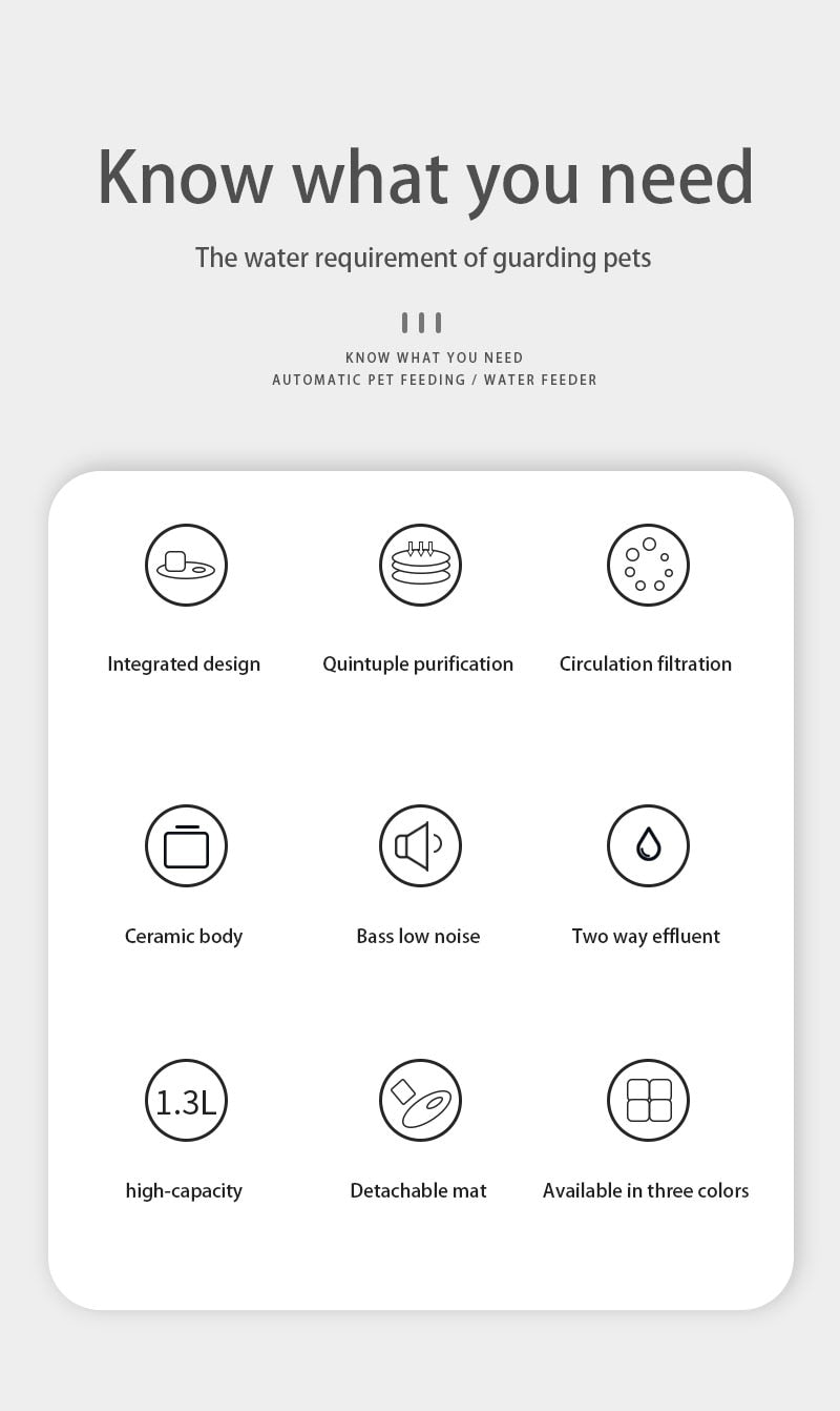 SAFETY: pet water dispenser cat The large capacity design of 1.3 L, you can also provide enough water for your pets when you are on a business trip. At the same time Water Dispenser for Cats The use of anti-dry water pumps will automatically cut off the power when the water is insufficient, which is safe and reliable.