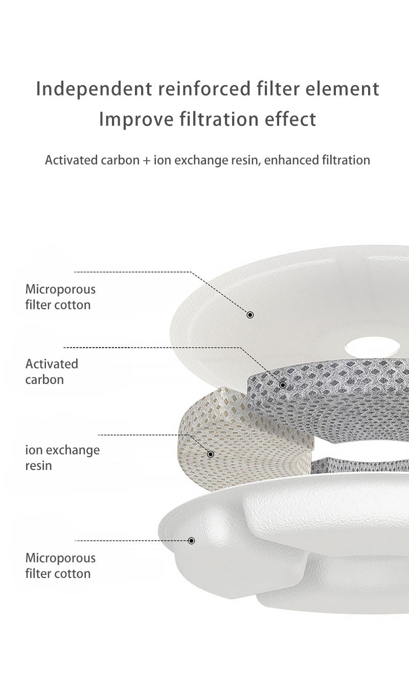PURIFICATION CYCLE: Are you still worried about whether your pet's drinking water is healthy? Pet Dispenser 360°cyclic filtration, 24 hours non-intermittent purification, double-layer activated carbon filtration makes the circulating water clean as before, purifies the water quality, removes harmful substances in the water.
