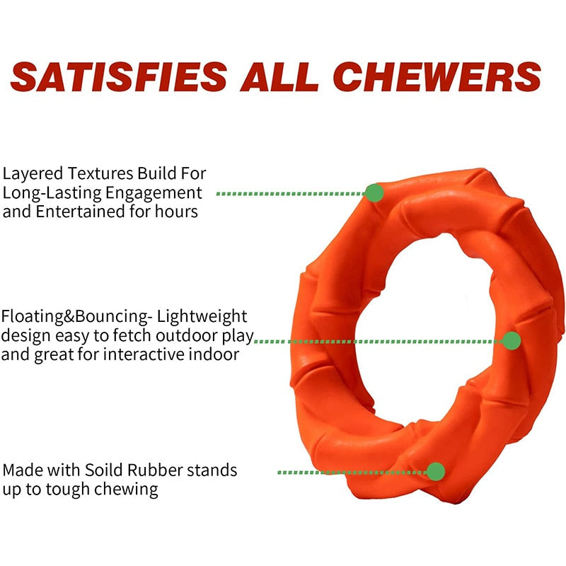Made of solid rubber material, make this dog chew toy safe & non-toxic, extremely tough enough and indestructible. Great support longer lasting heavy chewers, which is enough to satisfy and relieve their chewing urges.The rubber surface of ring material is easy to clean, simply rinse or wipe off.