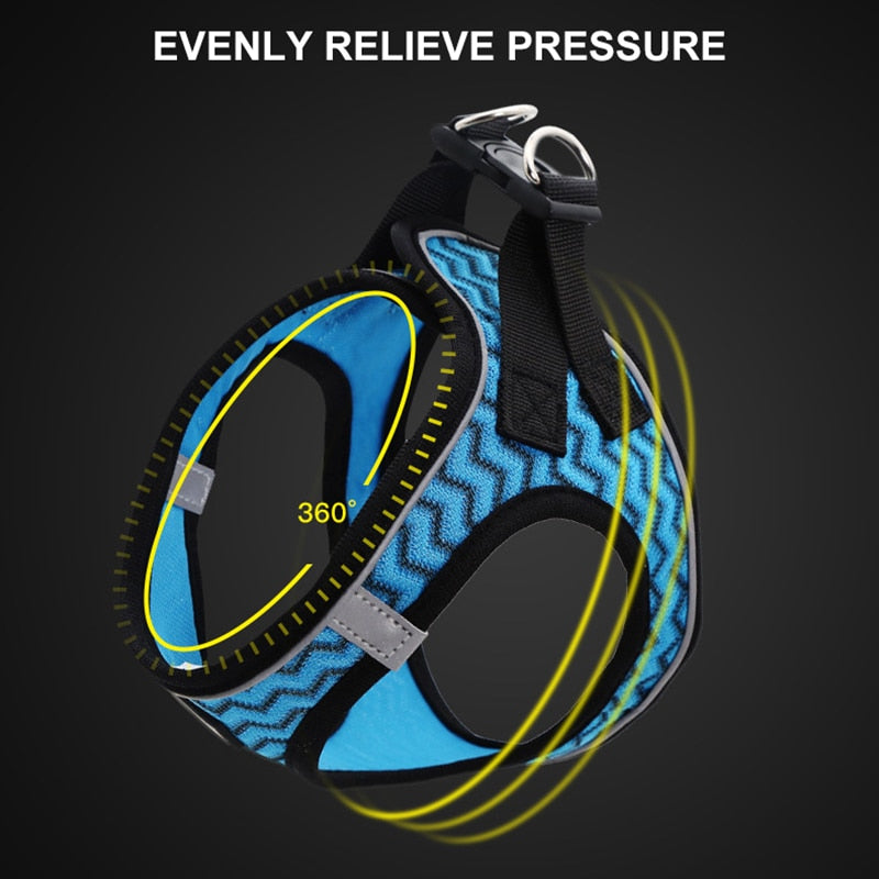 Protect Chest And Abdomen- 360 surround integrated design, evenly relieve pressure and lightly wrapped to protect the dog's chest and abdomen. Designed with two D-rings, very easy to fix the dog harness, not easy to swing, and prevent choking and pulling.