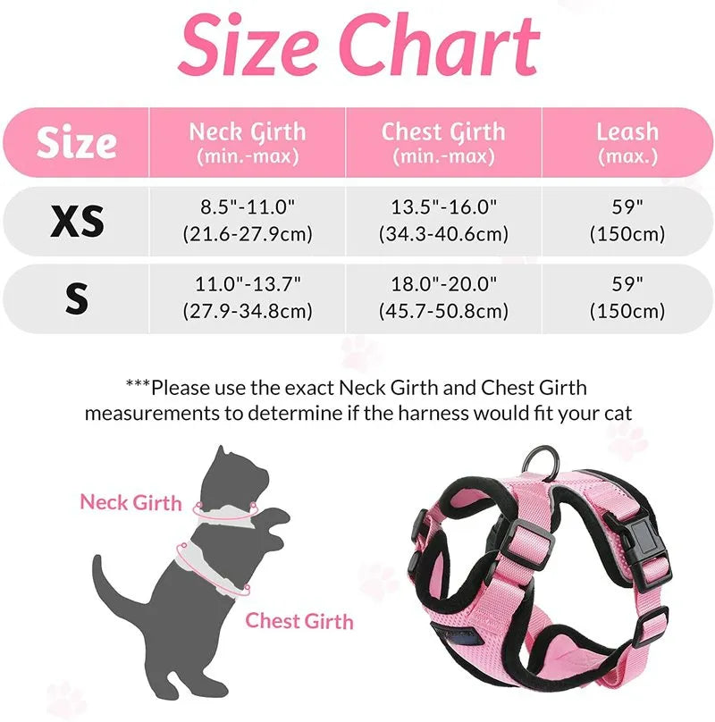 1. XS: Designed for Average Cats (Neck Girth: 8.5 -11", Chest Girth: 13.5 - 16")