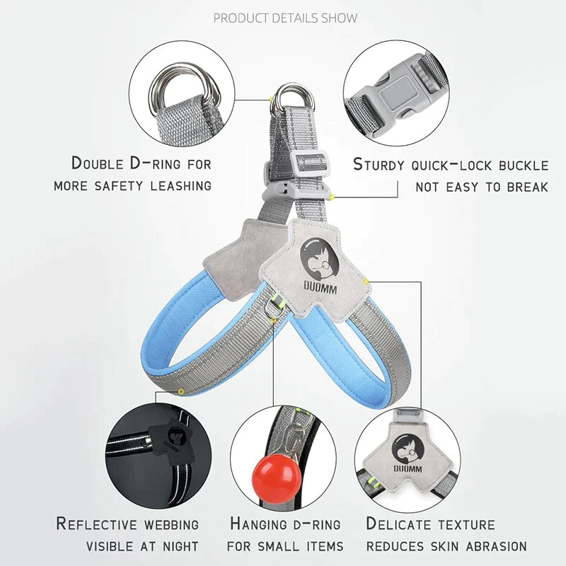 [Comfortable and Breathable]: The harness is made of breathable and soft inner mesh fabric, which is convenient for heat dissipation and easy to clean and dry, universal for all weather, and perfect for use when taking your dog for a walk