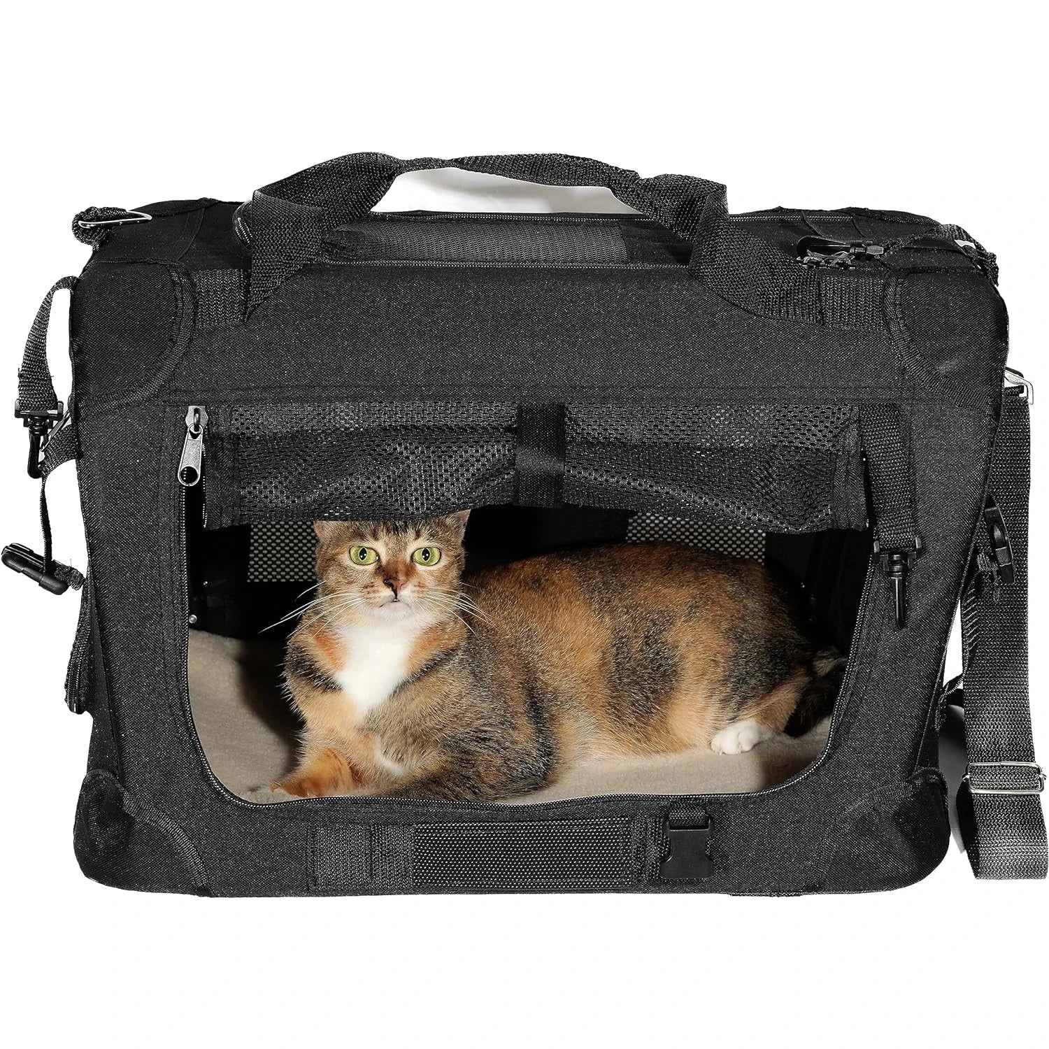 This cat carrier is easy to carry and store, which has a padded shoulder strap and handles.