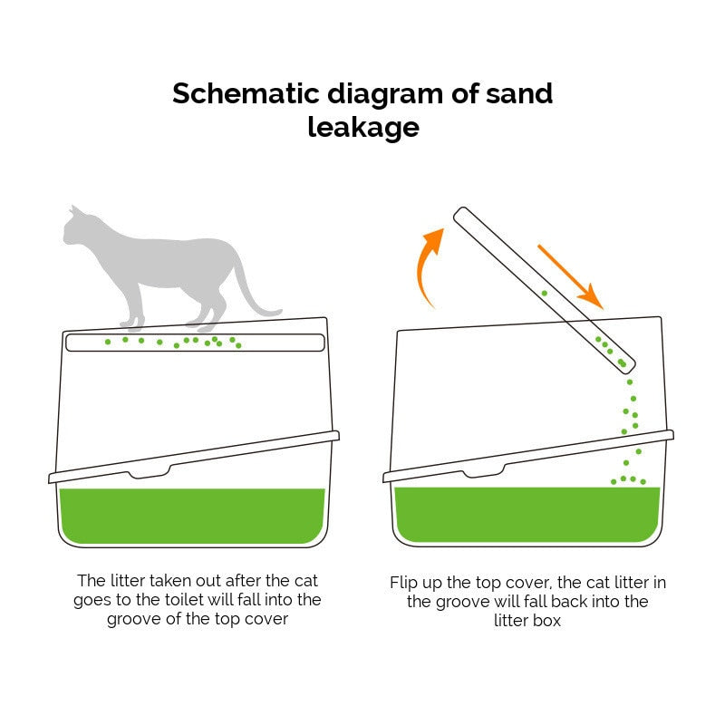 【Effectively prevent cat litter from falling to the ground】 : The door of the litter box is a one-way design. After the cat enters, it cannot come out through the door. It can only come out from the top. The lid on the top has many small holes. The litter carried by the cat falls back into the litter box.