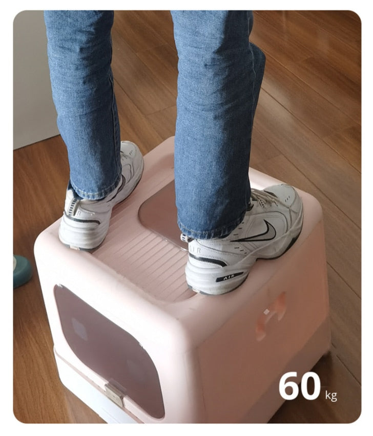 TWO WAYS TO USE-There is a front door and a top door. Kittens and older cats can enter and exit through the front door. Adult cats will leave most of their litter in the litter box when they exit through the top door, preventing litter splashing and reducing the hassle of cleaning.