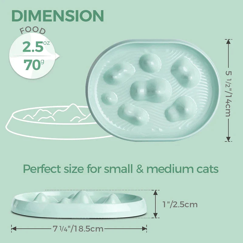 [Promote Healthy Eating] slow feeder bowls are characterized by lots of mountain ridges, which effectively slow down your pets' eating speed helping prevent obesity, bloat, regurgitation, and overeating.