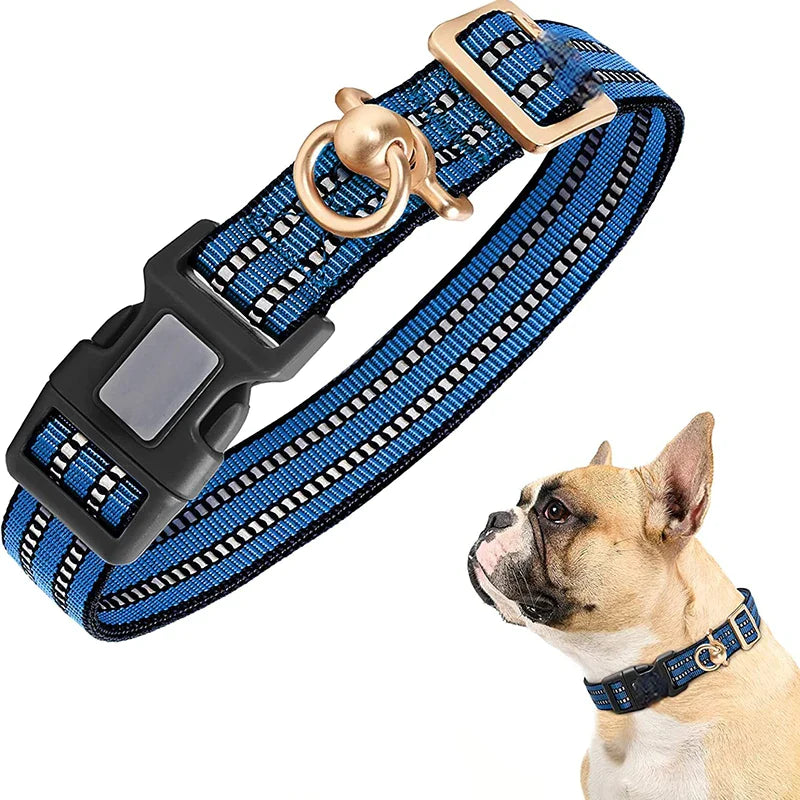 Durable Material- All Day Comfort. The dog collar is made from durable nylon material, soft and lightweight, also easy to wash, provides a better experience for playful dogs; suitable for any outdoors to resist the forces of the most powerful medium and large dogs.