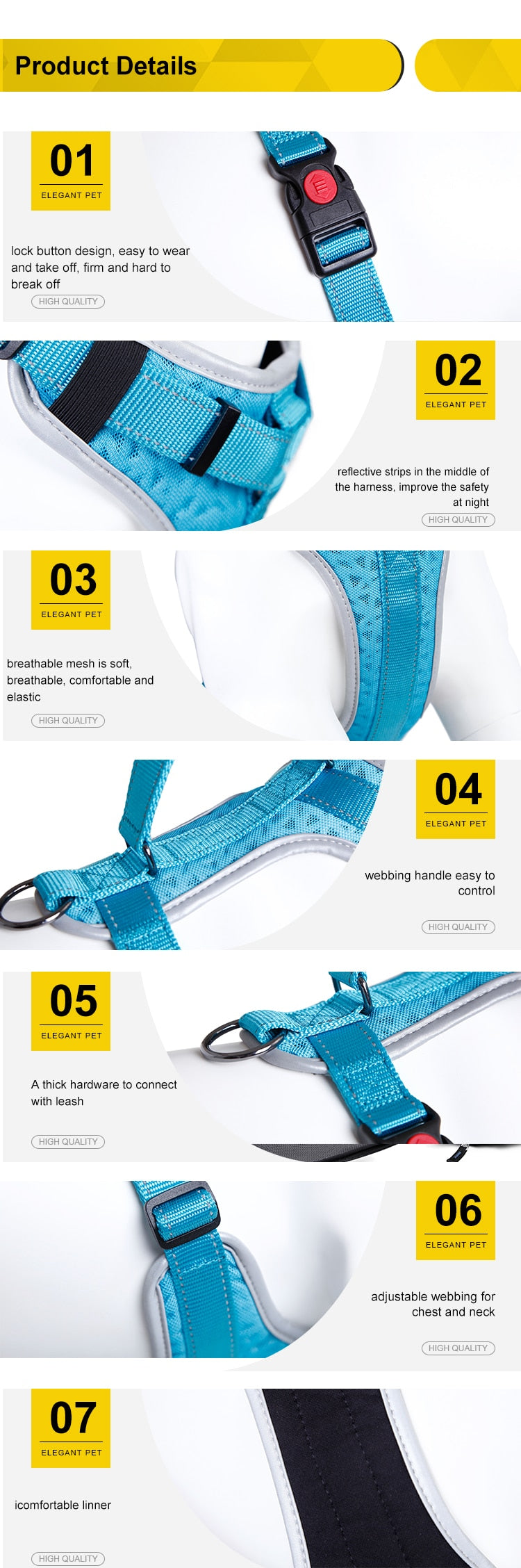 Reflective strips in the middle of the harness,improve the safety at night