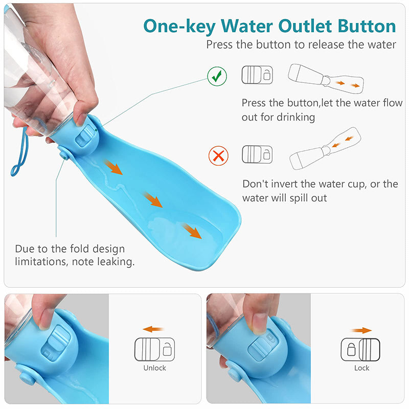 Durable & Safe: The portable dog water bottle made of high-quality food-grade material, we promise that your pet friends can drink healthy and fresh water at any time without worry.
