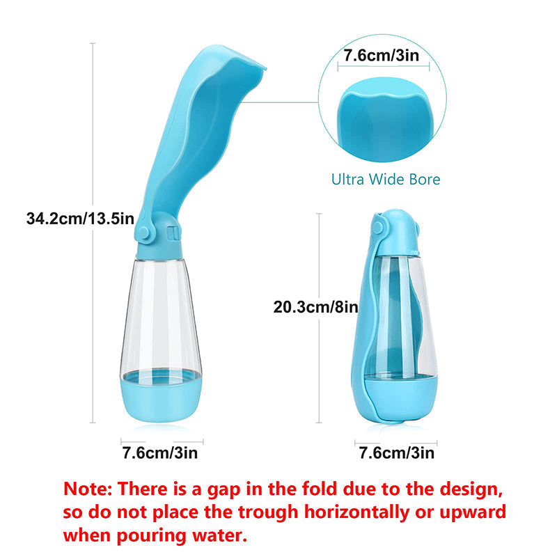 Larger Capacity & Wider Trough: Compared with other dog water bottles, this water cup has a larger capacity (420ml), and a wider sink (80 mm), more convenient for various dog breeds with a longer outdoor walking, hiking, and traveling.