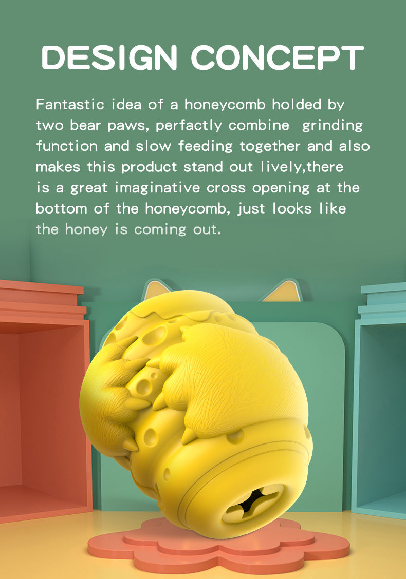 Fantastic idea of a honeycomb with two bear paws. Perfectly combining teeth grinding function and slow-feeding.