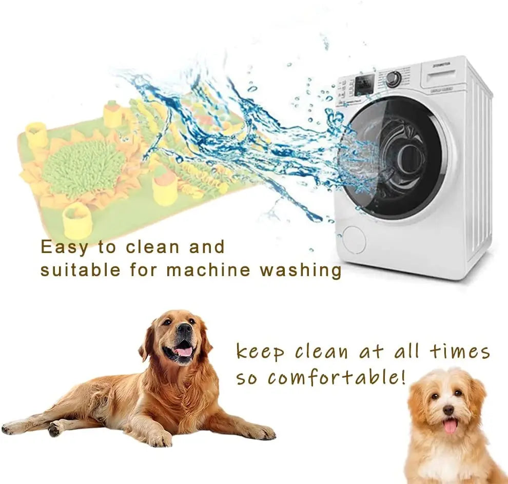 【Soft and Non-slip, Machine Washable】This training mat is made of thick fleece, soft and durable to protect your dog's nose and face from been chafing. Also,it is easy to clean and suitable for machine washing.The bottom adopts silicone anti-slip particles, which can effectively fix the feeding pad and prevent it from moving.
