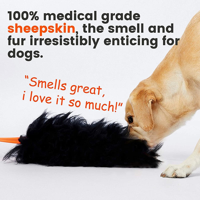 If your dog is motivated as much by fetching as they are by tugging, this bungee chaser toy is a absolute best choice.Made from real medical grade sheepskin and finished with a sturdy nylon webbing and padded handle, this chaser toy is excellent for stimulating prey and building drive in puppies and adult dogs alike.