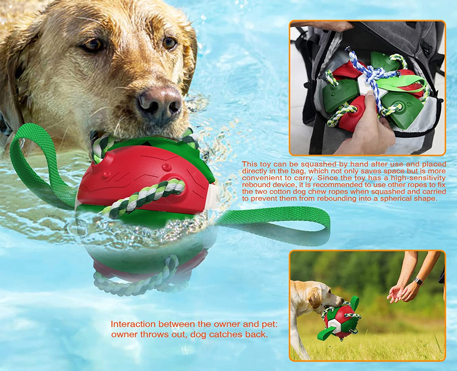Rebound Frisbee Ball: The toy can be squashed from a ball to a frisbee. Throw out the toy and the frisbee will bounce back into a sphere by itself during the flight. This product is easy to throw far and high, and the flight is stable. Allowing the dog to fetch back the frisbee ball thrown by the owner can increase the dog's physical strength and make the dog healthier.