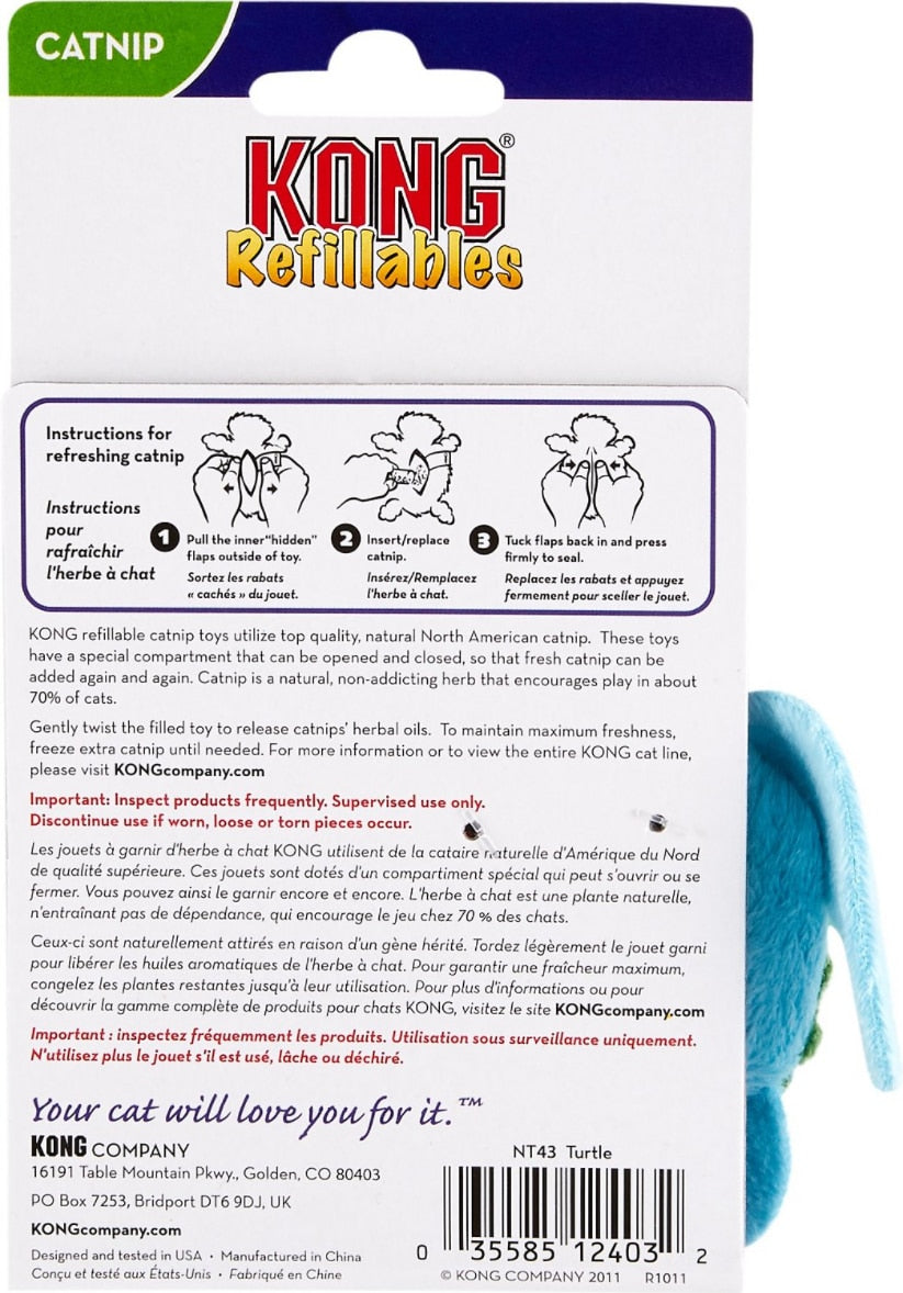 • KONG refillables have a compartment to hold fresh catnip securely in place.