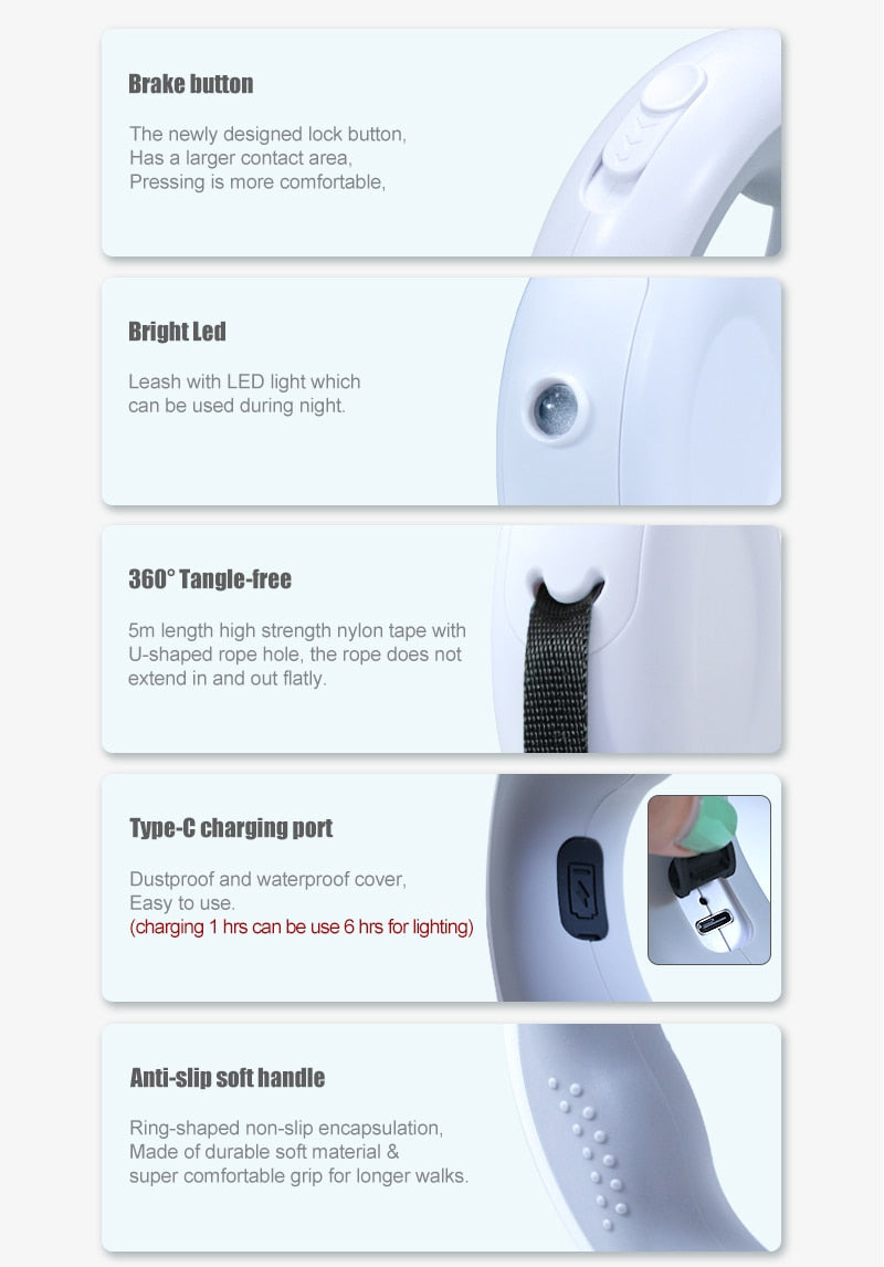 Luxury Led Lights Retractable Dog Leash