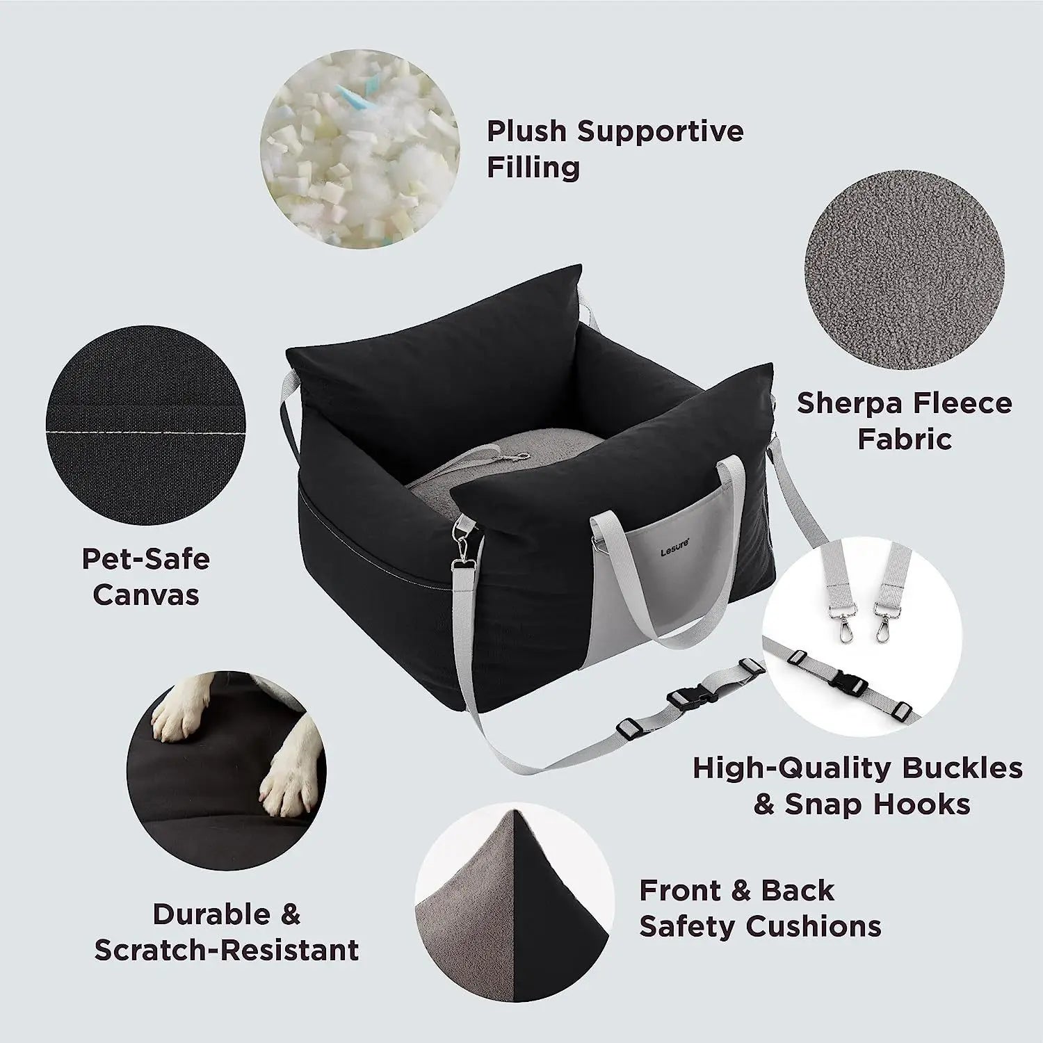 Front and back safety cushions, durable and scratch resistant and pet safe canvas.