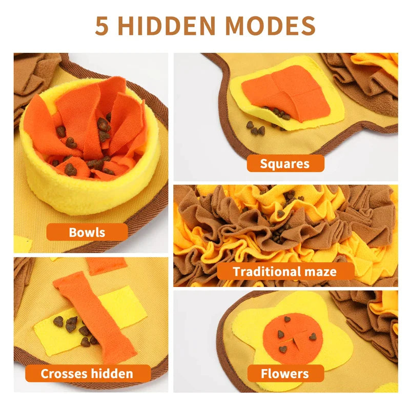 5 PLACES TO HIDE TREATS - This sniff mat for dogs contains 5 different places to hide food, kibble, or treats, increasing the fun, challenge and training intensity of foraging. It allows you to enjoy the happy time of interacting with your dogs, keep them busy and avoid destroying the furniture due to boredom