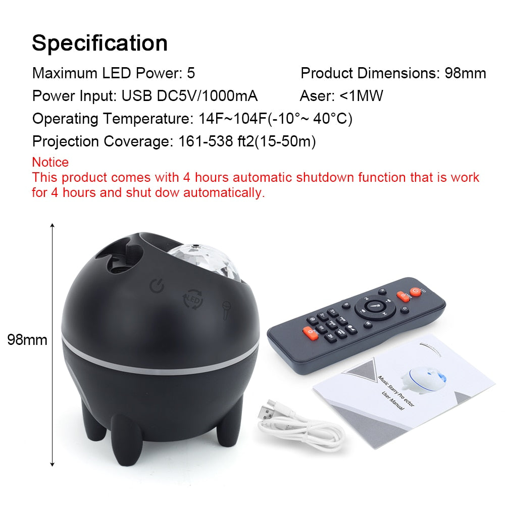 Music Starry Night Light Projector: Starry night light can project a realistic starry night onto the walls and ceiling, creating a good sleeping environment for babies, showing an unforgettable night for your family or friends.