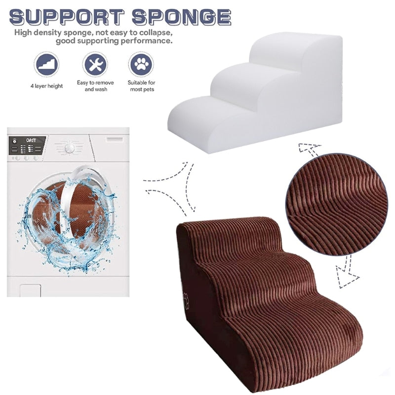 High-quality Material: This dog staircase is made of corduroy jacket, with anti-skid effect, and filled with high-quality sponge inside, which is breathable, dry, hygroscopic, soft, comfortable, eco-friendly, and harmless.