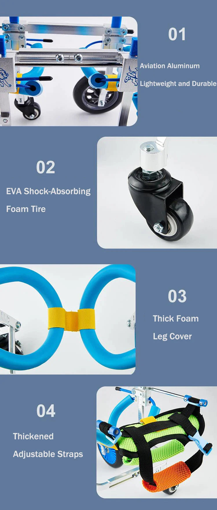 Wheelchair is light and easy to be pull for pets. Help pet pet pet stand up and walk again.