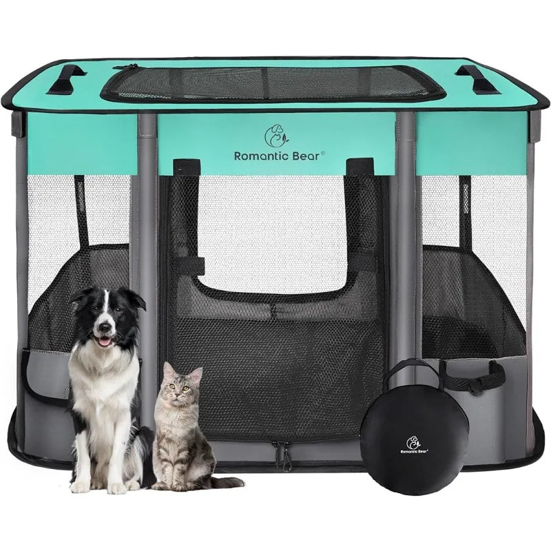 EXCELLENCE PERFORMANCE: Pet playpen for small dogs is a great alternative to a traditional kennel!Pet playpen with mesh net.Many windows for your pet and unzips easily. Comes with a convenient carry-case. Lightweight but strong, which makes this portable pet playpen ideal for indoors, outdoors, traveling, camping. It has plenty of space, easy to move around.It also folds flat when not in use for easy carrying and storing.